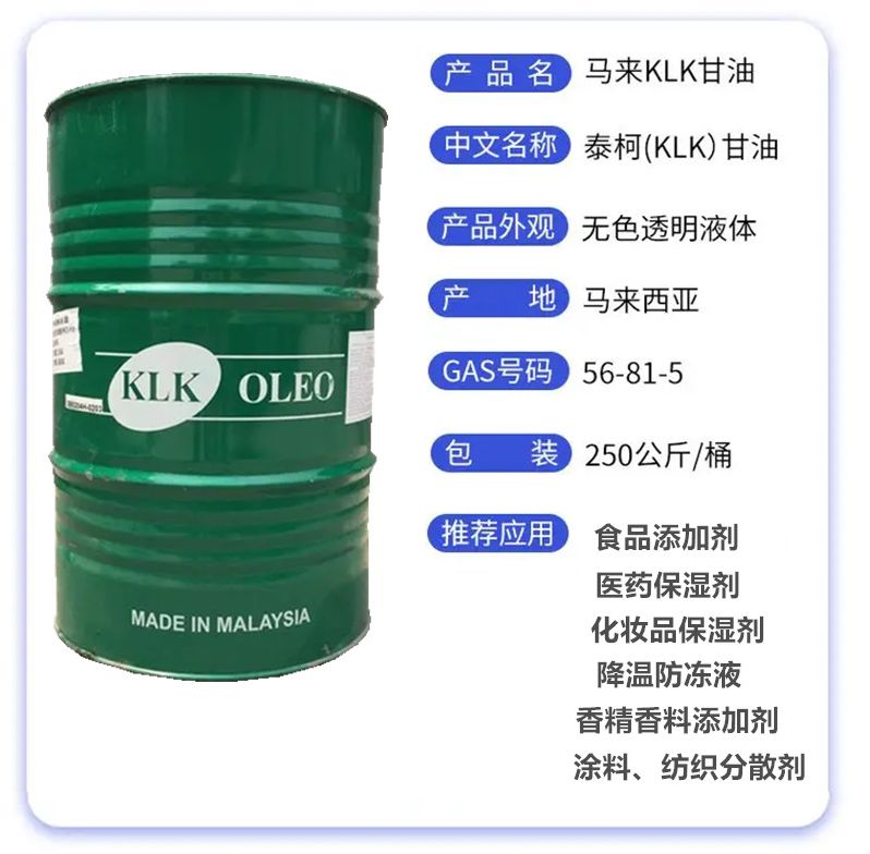 高纯度:KLK 甘油的纯度通常很高,杂质含量极低,能满足各种对纯度要求较高的应用场景。