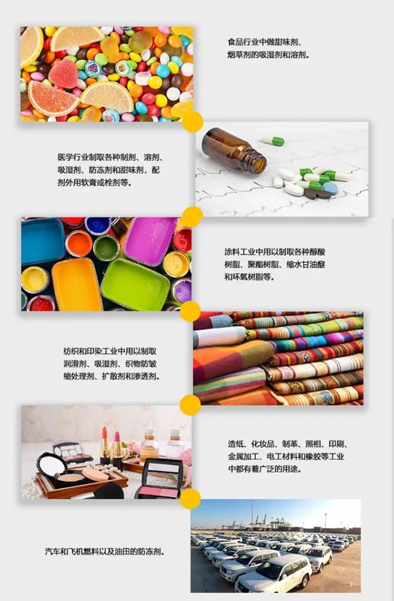 甘油是无色味甜澄明黏稠液体,能从空气中吸收潮气,也能吸收硫化氢、氰化氢和二氧化硫。难溶于苯、氯仿、四氯化碳、二硫化碳、石油醚和油类。可用作溶剂,润滑剂,药剂和甜味剂,广泛应用于护肤品中。