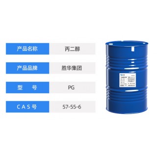 1,2-丙二醇,为无色透明的粘稠液体,无臭,味微甜,有引湿性。性质基本上与甘油相同,但粘度、毒性和刺激性均较甘油小。其溶解性能好,能与水、甘油、乙醇等等混溶,还能溶解于乙醚、氯仿中,但也不能与脂肪油混溶。