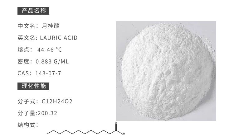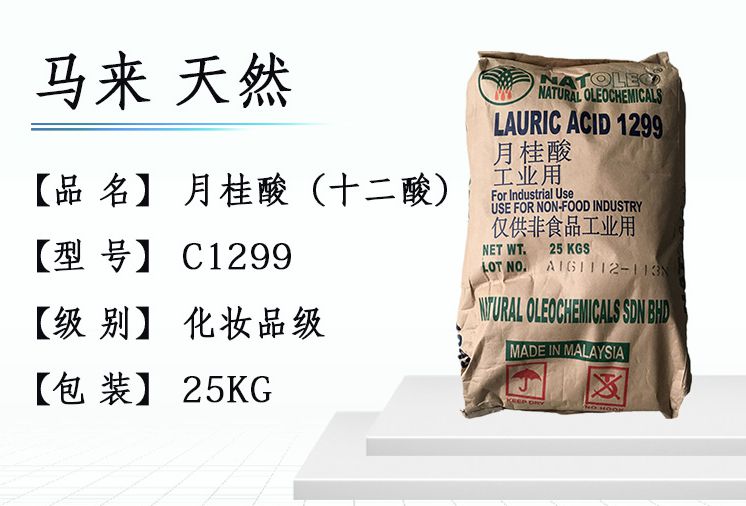月桂酸(十二烷酸)作为一种重要的天然油脂成分,具有多种功能特点。它主要用于生产醇酸树脂、湿润剂、洗涤剂、杀虫剂、表面活性剂等多种产品,是这些行业的重要原料。此外,月桂酸还常作为润滑剂使用,具备润滑剂和硫化剂等多种功能。