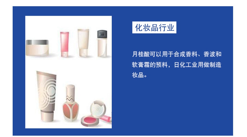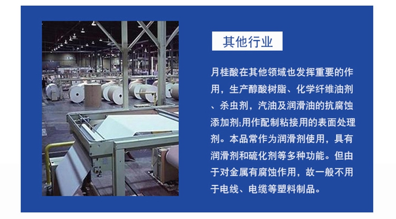 3.月桂酸是生产香皂、洗涤剂、化妆品表面活性剂和化学纤维油剂的原料。